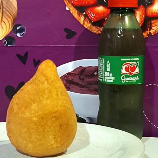 Delicioso açaí com creme de cupuaçu super completo. Leite em po, granola,paçoca, amendoim, sucrilhos. Frutas: uva,banana,kiwi,manga. Caldas, leite condensado e morango