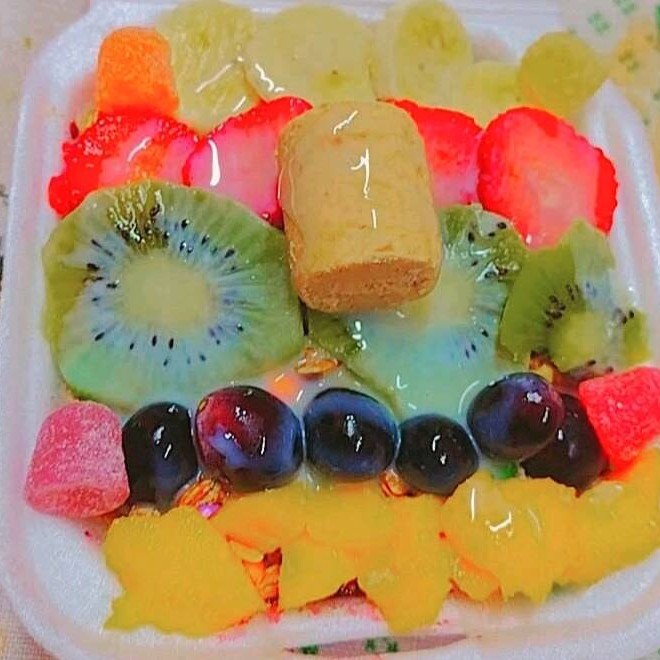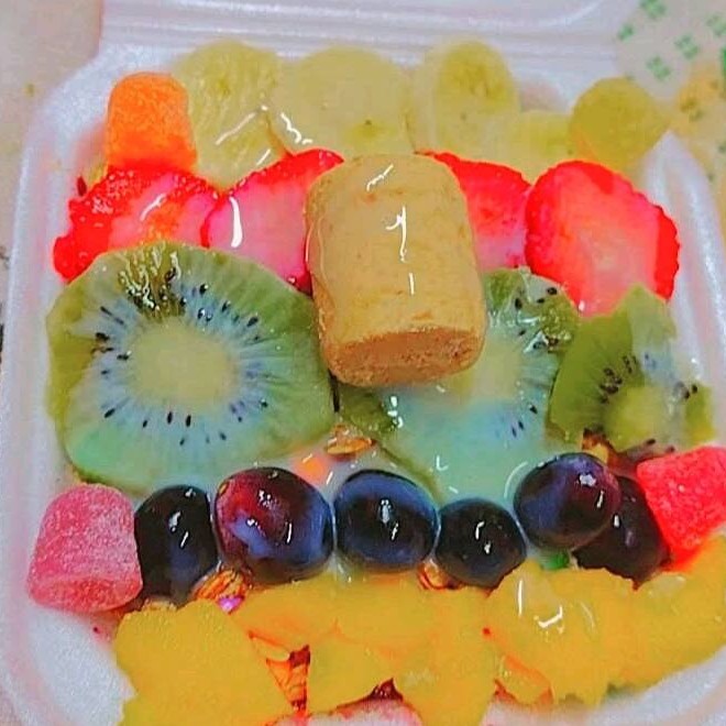 Acompanhar: leite em po, sucrilhos, amendoim, paçoca. Granola,banana uva,kiwi, cobertura: leite condensado, morango