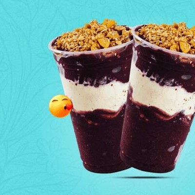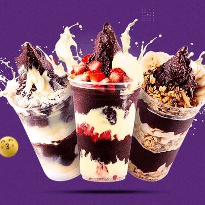 Monte seu açaí do seu jeito Com 3 opções de complementos, 2 frutas, 2 caldas.