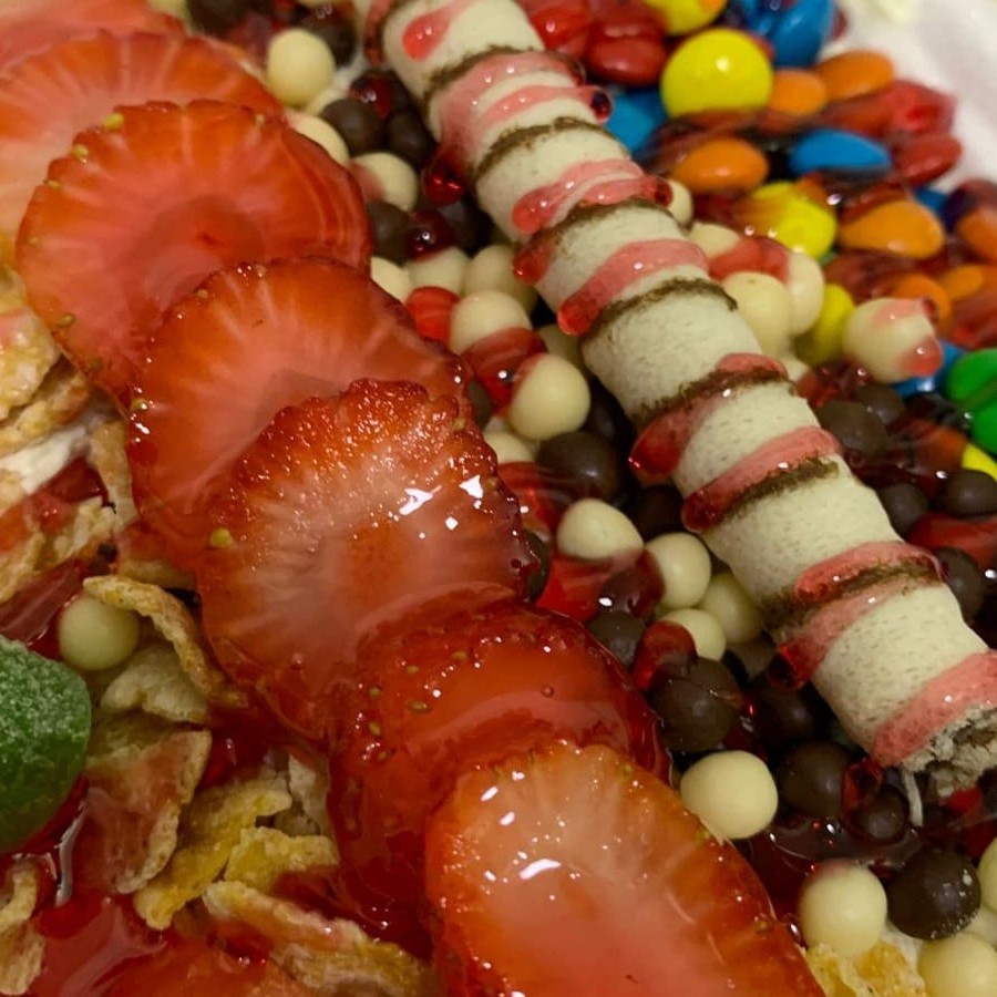 Opção p/ quem curte o açaí com opções voltada p/ guloseimas. O mesmo vai com os seguintes complementos: Leite Em Pó, Sucrilhos, Confetes (m&ms), Chocoball, Jujuba, Canudo De Biscoito, Fruta Morango E Calda De Morango.