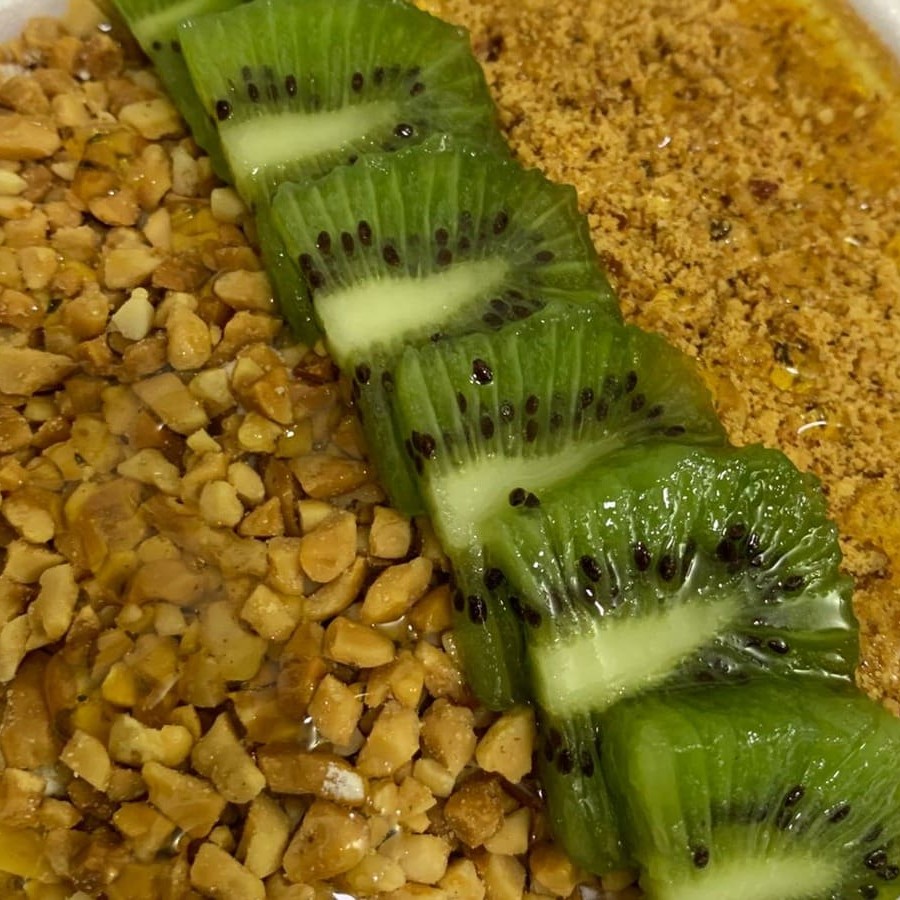 Opção p/ quem curte o açaí com opções voltada p/ o amendoim. O mesmo vai com os seguintes complementos: Leite Em Pó, Farinha De Amendoim, Amendoim Granulado, Paçoca, Fruta Kiwi E Calda De Mel.