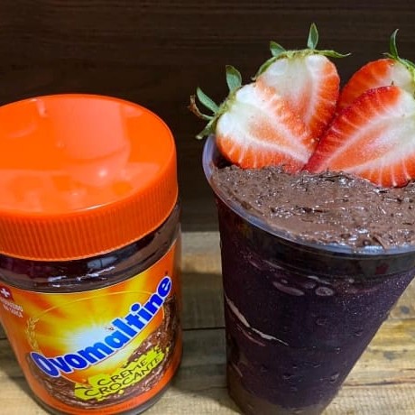 Açaí cremoso tradicional com frutas naturais cortadas na hora complementos super crocantes a sua escolha e finalizando com um recheio de creme de Ovomaltine crocante.