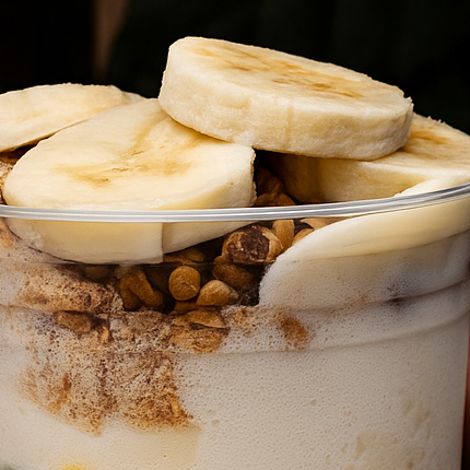 Eleve sua experiência de açaí com nosso clone de Açaí Premium de 400ml Cada camada é cuidadosamente montada com açaí puro, frutas frescas da estação, granola crocante e uma variedade de coberturas irresistíveis.