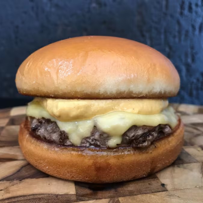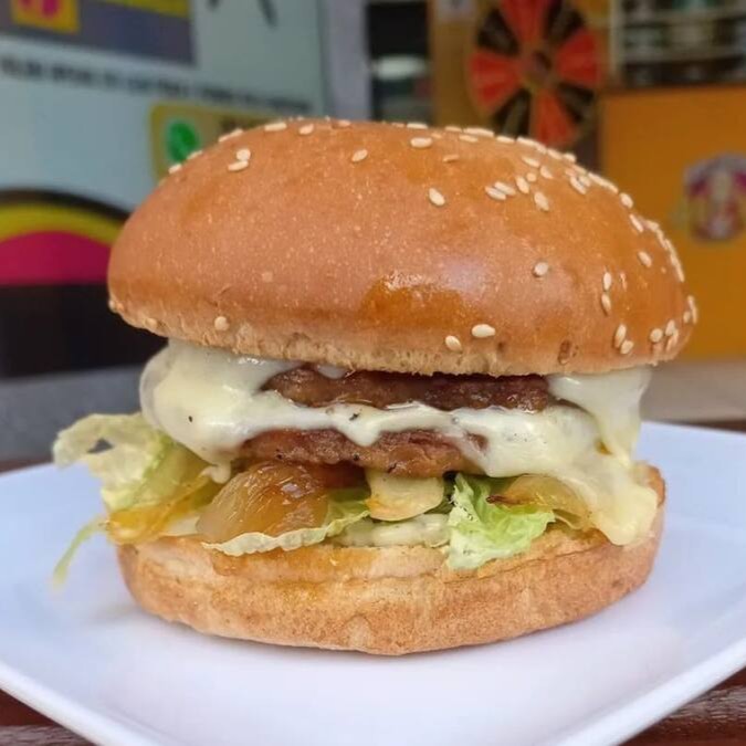 Pão amanteigado ,80g carne artesanal, creme cheese, acelga, cebola caramelizada ou crua, molho explosão e maionese caseira.