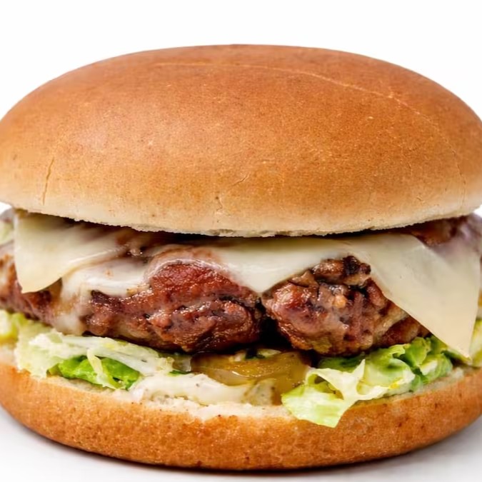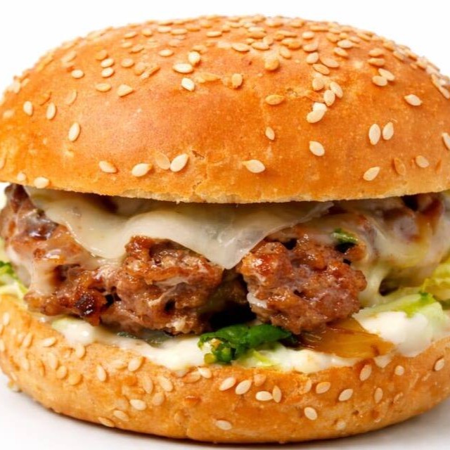 Pão pequeno, carne, queijo, acelga, cebola caramelizada ou crua, molho especial j.