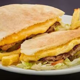 Pão Sírio, Calabresa, Queijo Mussarela, Tomate, Cebola Caramelizada, Acelga, Maionese Caseira, Presunto, Molho Barbecue e Batata Frita