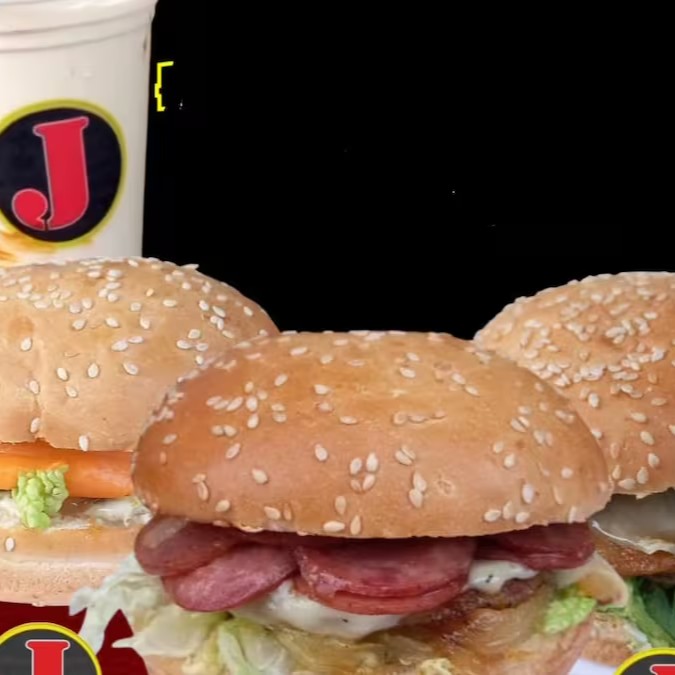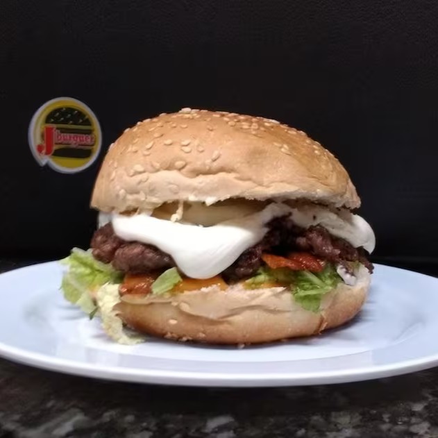 1 J Burguer: Pão com gergelim, carne tradicional, queijo, cebola caramelizada, acelga e maionese especial.