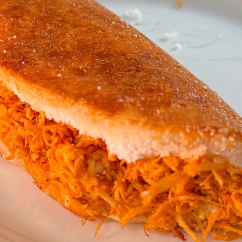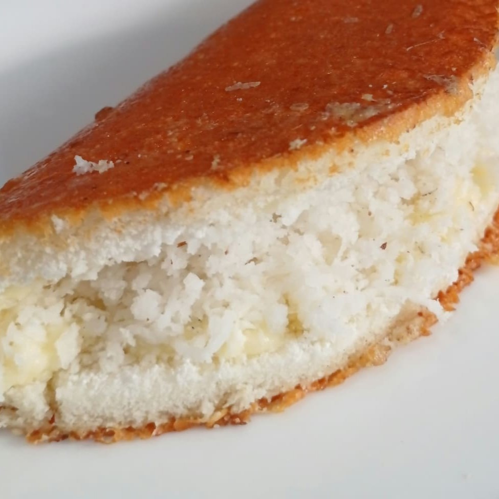 Preparado com uma camada generosa e derretida de queijo coalho, tornando a massa crocante e saborosa. Recheado com coco ralado .
