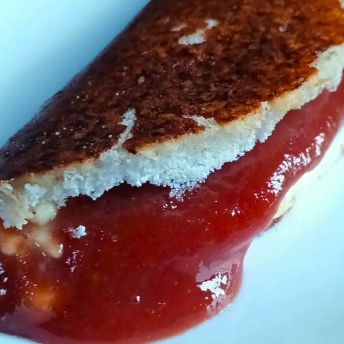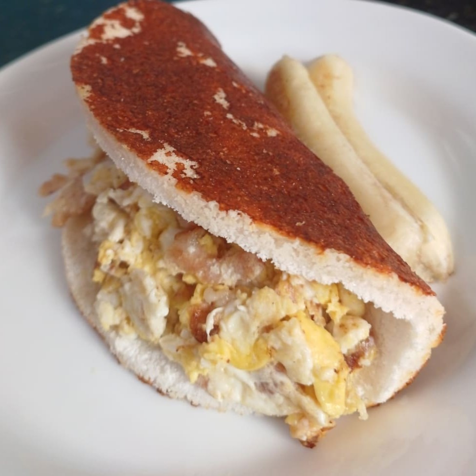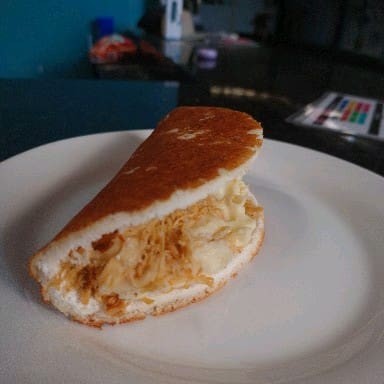 Opções: Queijo, ovo e banon / Ovo e queijo / Bacon e ovo. Preparado com uma camada generosa e derretida de queijo coalho, tornando a massa crocante e saborosa. Recheado com bacon e ovo.