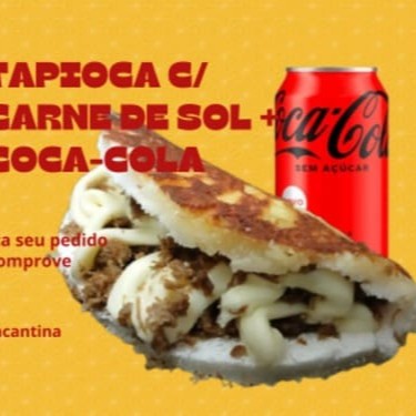 Tapioca super recheada com carne de sol e requeijão mais coca geladinha