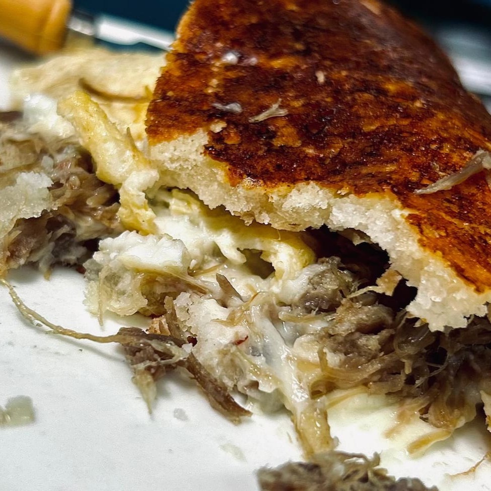 Opções: Charque e requeijão / Charque e queijo/ Charque. Preparado com uma camada generosa e derretida de queijo coalho, tornando a massa crocante e saborosa. Recheado com charque.