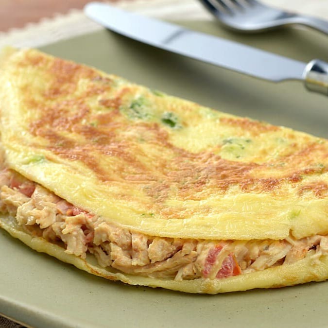 Dois ovos, goma de tapioca, frango desfiado e requeijão Catupiry profissional