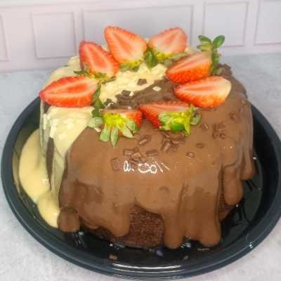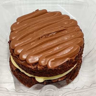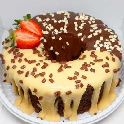 Massa sabor chocolate, e cobertura meio a meio, chocolate e leitinho. 12cm de diâmetro.
