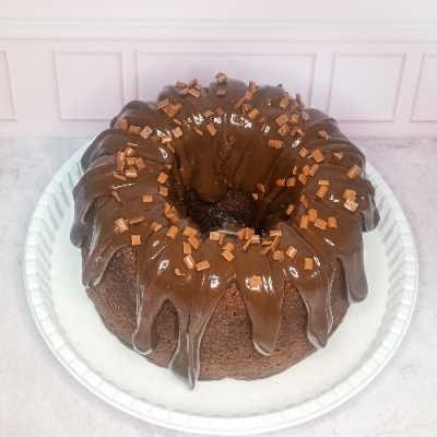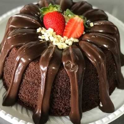 Massa de chocolate fofinha com cobertura de brigadeiro cremoso de chocolate 50% cacau. 16cm de diâmetro . Rende aproximadamente 8 fatias.