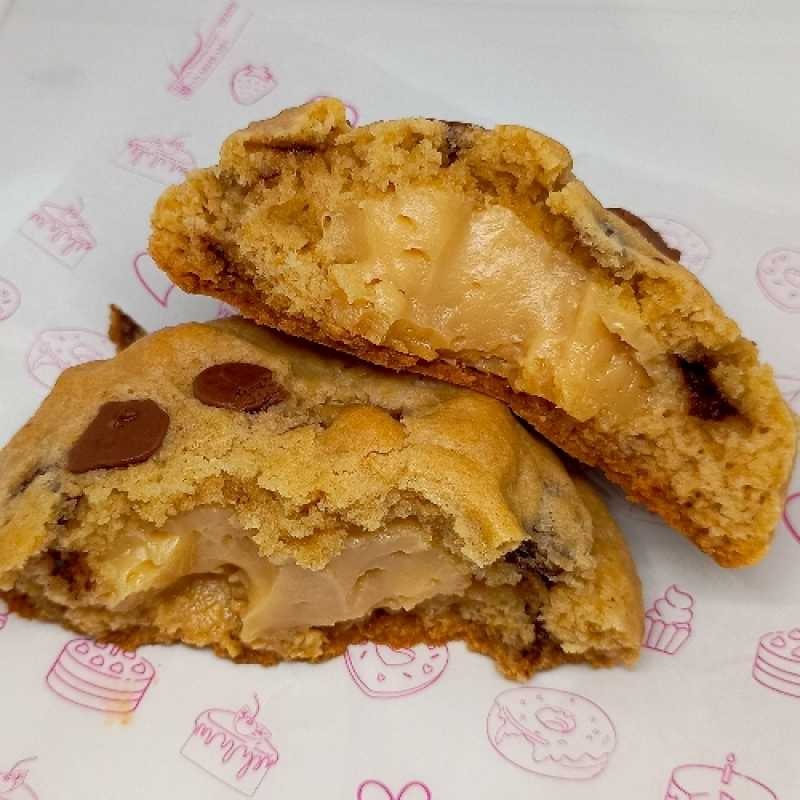 Massa de cookie com toque de amendoim e recheio de brigadeiro de caramelo salgado. Macio por dentro e crocante por fora.