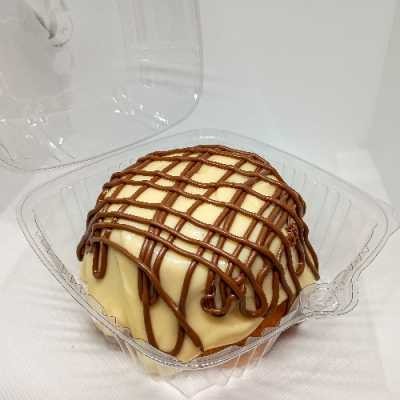 Massa branca fofinha, com cobertura cremosa de leite em pó e creme de avelã para finalizar! 12cm de diâmetro