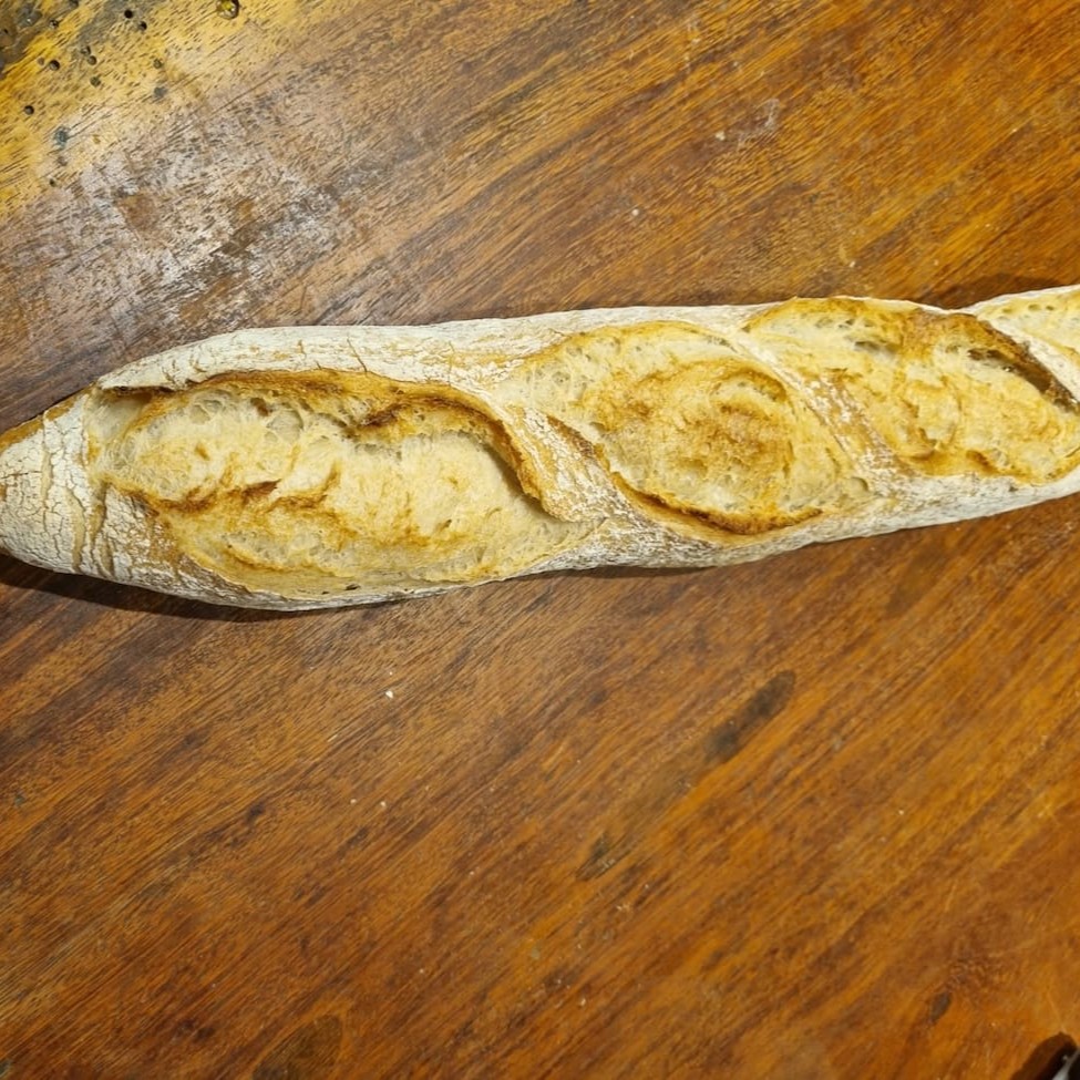 Um pão que traduz a essência da panificação artesanal. Produzido com Farinha Francesa T-65, traz uma textura leve e diferenciada, resultado do cuidado em cada etapa do preparo. A combinação do Levain natural e do fermento fresco proporciona uma fermentação lenta e controlada, desenvolvendo um sabor profundo, casca dourada e crocante e um miolo arejado e macio. O toque de azeite extra virgem adiciona suavidade e notas sutis do Mediterrâneo, enquanto a alta hidratação da massa garante porosidade única.