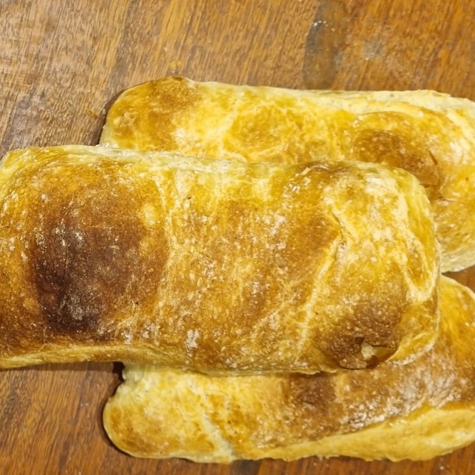 Delicioso Pão Ciabatta, uma autêntica delícia internacional. Cuidadosamente feito com farinha selecionada, sal equilibrado, água pura e fermento fresco, que lhe confere uma textura única e um sabor inigualável. Ideal para qualquer refeição, do café da manhã ao jantar. Combinará perfeitamente com seu recheio favorito. Experimente esse ícone da panificação italiana e perceba a diferença que a qualidade faz em cada mordida.