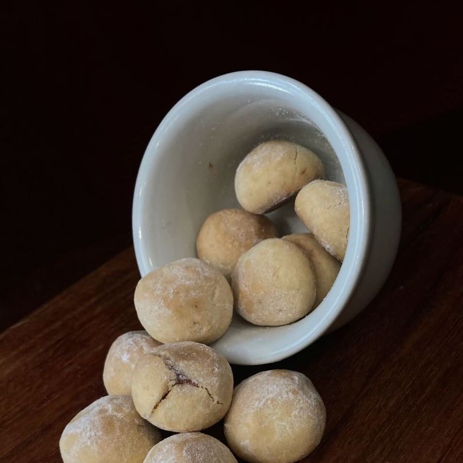 Delicadeza que se desmancha ao primeiro toque nos lábios. A combinação do amido de milho, farinha de trigo e manteiga cria uma massa leve, que recebe o frescor adocicado do coco em equilíbrio perfeito. Cada mordida revela uma textura macia por dentro e levemente crocante por fora, trazendo à memória o aconchego das receitas feitas em casa. Ideal para acompanhar um café fresco ou um chá suave, transformando qualquer pausa em um momento especial. Contém glúten.