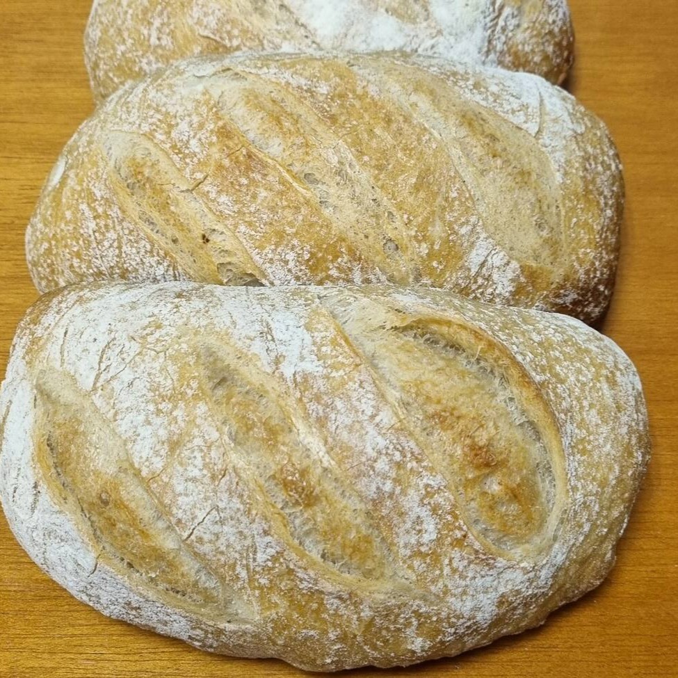 Com uma crosta dourada e levemente rústica, este pão de inspiração italiana carrega em si o cuidado e a tradição da fermentação natural. Preparado com a autêntica farinha T-65, sua massa ganha estrutura única e um miolo macio, cheio de alvéolos que revelam leveza a cada fatia. A combinação entre o levain e o fermento fresco garante um sabor profundo, levemente ácido e muito equilibrado, enquanto o toque sutil de sal realça todas as nuances do trigo. Crocante por fora e macio por dentro, ele é versátil e sofisticado.