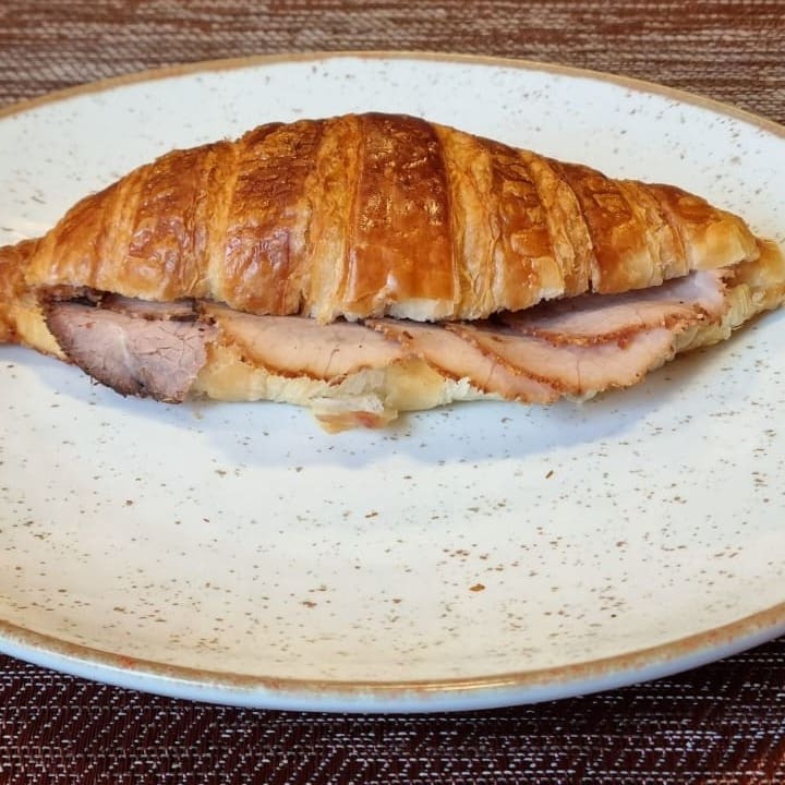Saboreie um autêntico croissant francês, preparado com fermentação natural que garante um sabor inconfundível. Este croissant é generosamente recheado com manteiga cremosa e rosbife suculento, que se desmancha na boca. O equilíbrio perfeito entre a crocância da massa e a suavidade do recheio faz deste prato uma experiência gastronômica única e irresistível. Ideal para um lanche sofisticado a qualquer hora do Dia.