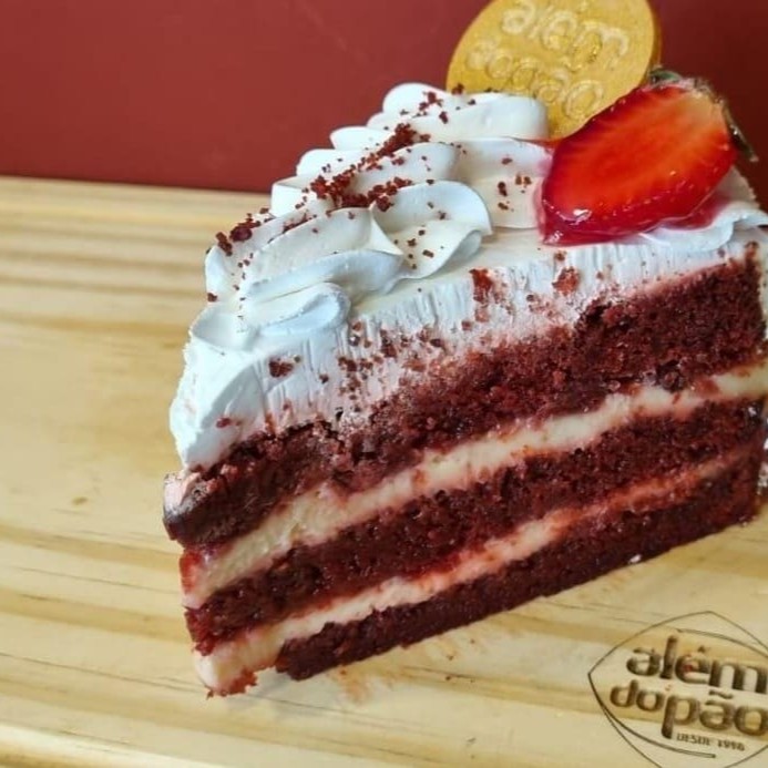 A combinação perfeita entre o sabor macio e delicado do bolo Red Velvet e a frescura do morango! Nossa fatia de bolo Red Velvet é super fofinha, com um toque levemente achocolatado e uma cobertura suave e cremosa, finalizada com um morango fresquinho e suculento. Uma sobremesa incrível, que traz equilíbrio e sofisticação a cada pedaço. Ideal para quem adora um doce delicioso e cheio de charme!