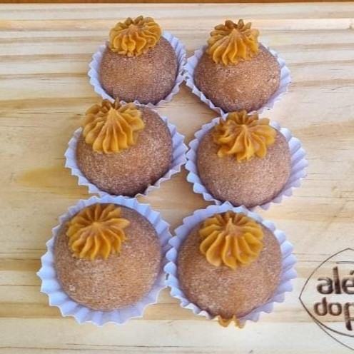 Uma explosão de sabor em cada mordida! Nosso docinho de churros é recheado com doce de leite cremoso e envolto em uma camada crocante, finalizado com o toque especial de açúcar e canela. Uma versão deliciosa e prática do churros tradicional, perfeito para quem adora essa iguaria em um formato compacto e irresistível!