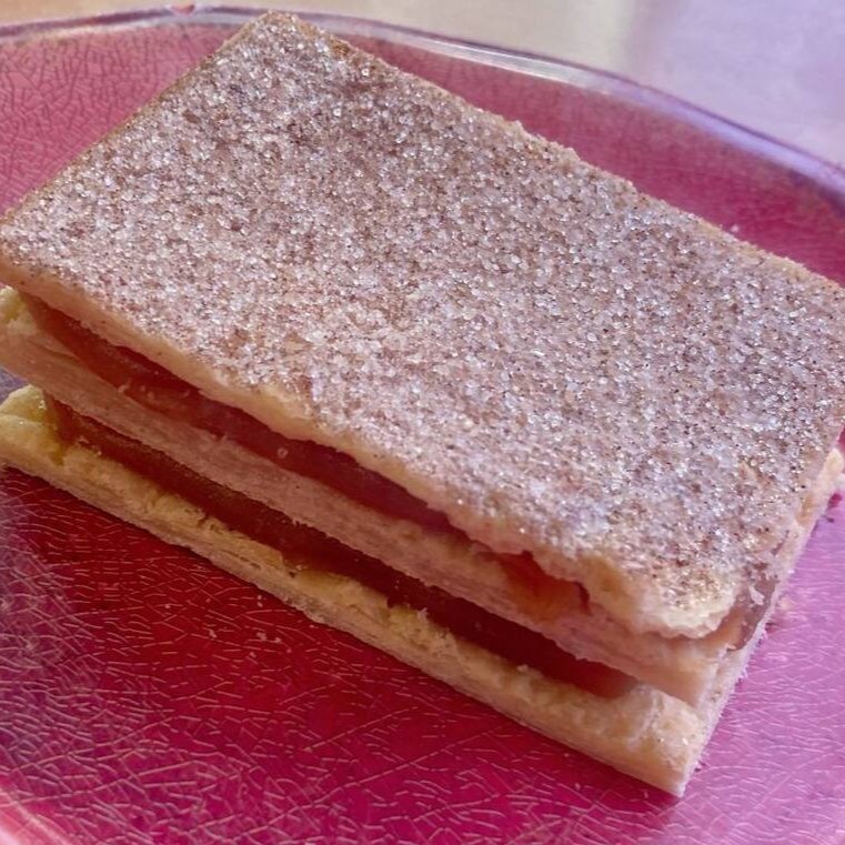 Uma sobremesa clássica que encanta pelo equilíbrio de texturas. As camadas crocantes de massa folhada se unem ao recheio delicado de creme, resultando em uma combinação suave, levemente adocicada e extremamente elegante. Ideal para quem aprecia sabores tradicionais com um toque refinado.