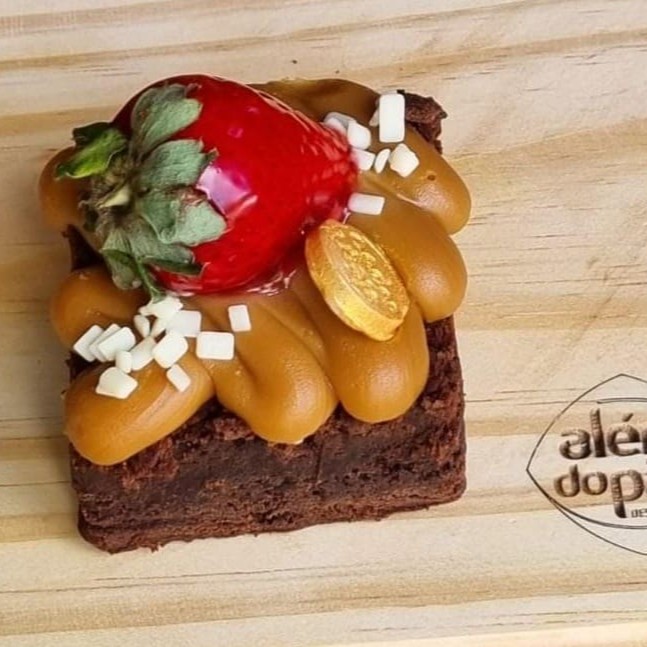 Uma verdadeira combinação de sabores irresistíveis! Nosso brownie de doce de leite é super macio, com um recheio cremoso e doce de leite, e finalizado com um morango fresquinho e suculento por cima. O equilíbrio perfeito entre a doçura do doce de leite e a frescura do morango, criando uma experiência única e deliciosa a cada mordida. A sobremesa perfeita para quem adora uma explosão de sabor!