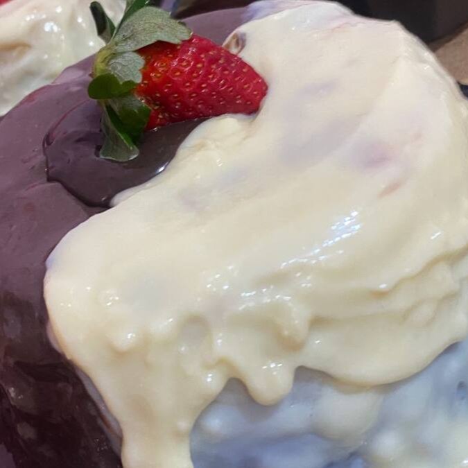 Bolo vulcão de brigadeiro, preparado com chocolate 50% cacau!