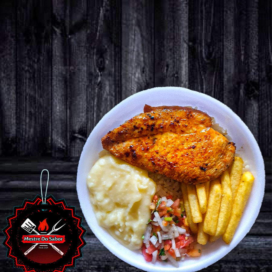Delicioso Filé de frango grelhado, com acompanhamentos a sua escolha