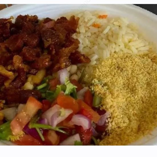 Delicioso Cuscuz com até 2 opções de carne , feijão e vinagrete ( Opcional )