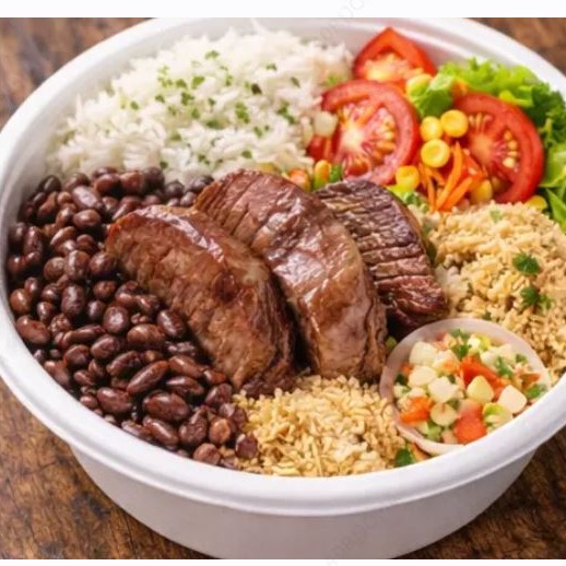 Delicioso Almoço completo, Com até 2 Opções de Carne, acompanha Feijão, Arroz branco ou Carioca, Macarrão ao molho .