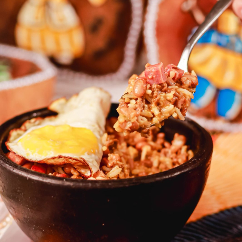 O autêntico arrumadinho de feijão verde, charque, bacon, farofa e vinagrete. Criado em homenagem ao melhor amigo e confidente da Chef Carmem, Zé Ricardo.
