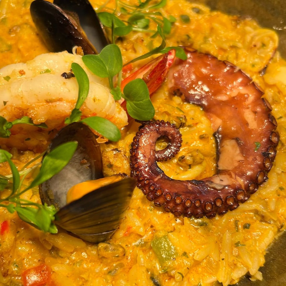 Delicioso arroz com tudo o que o mar tem. (polvo, camarão, lula, marisco, mexilhão, sururu, lambreta)