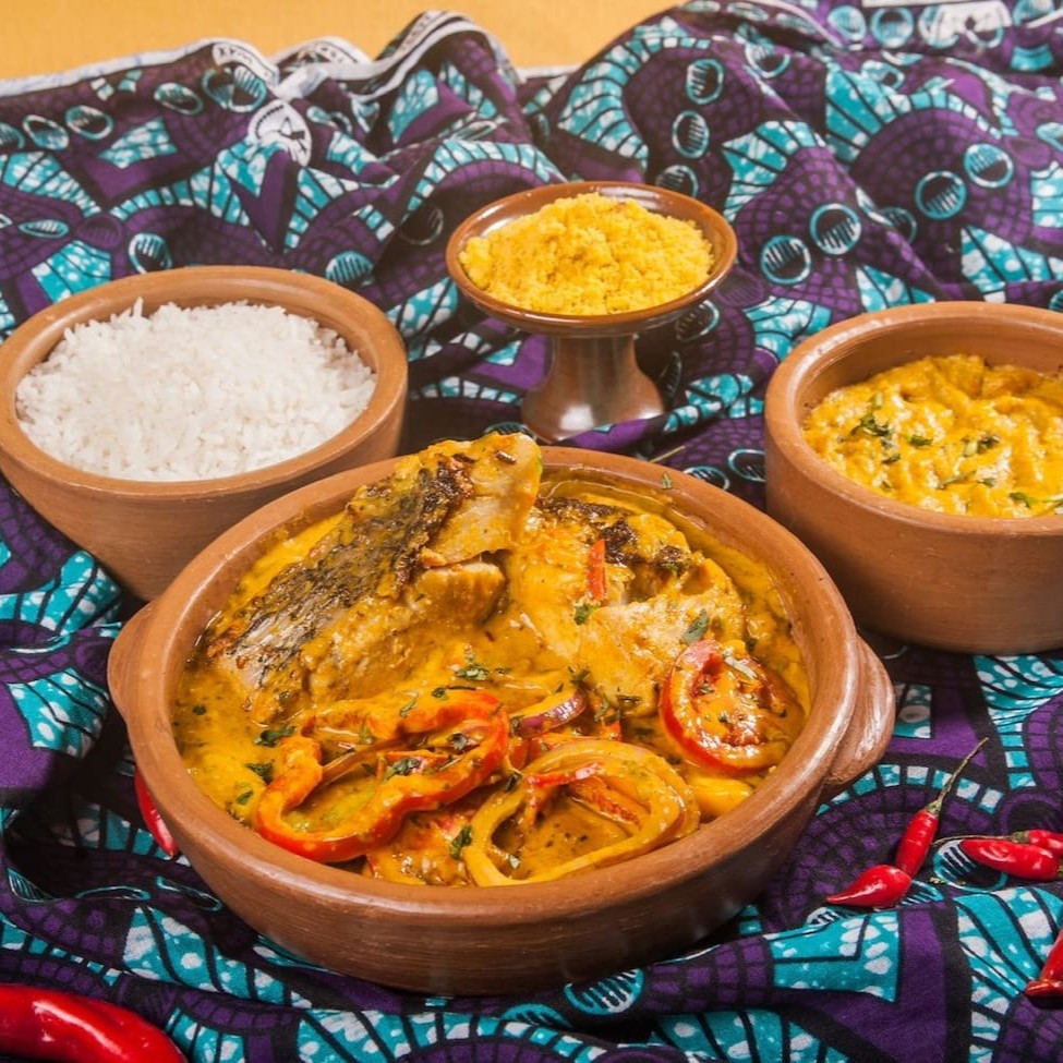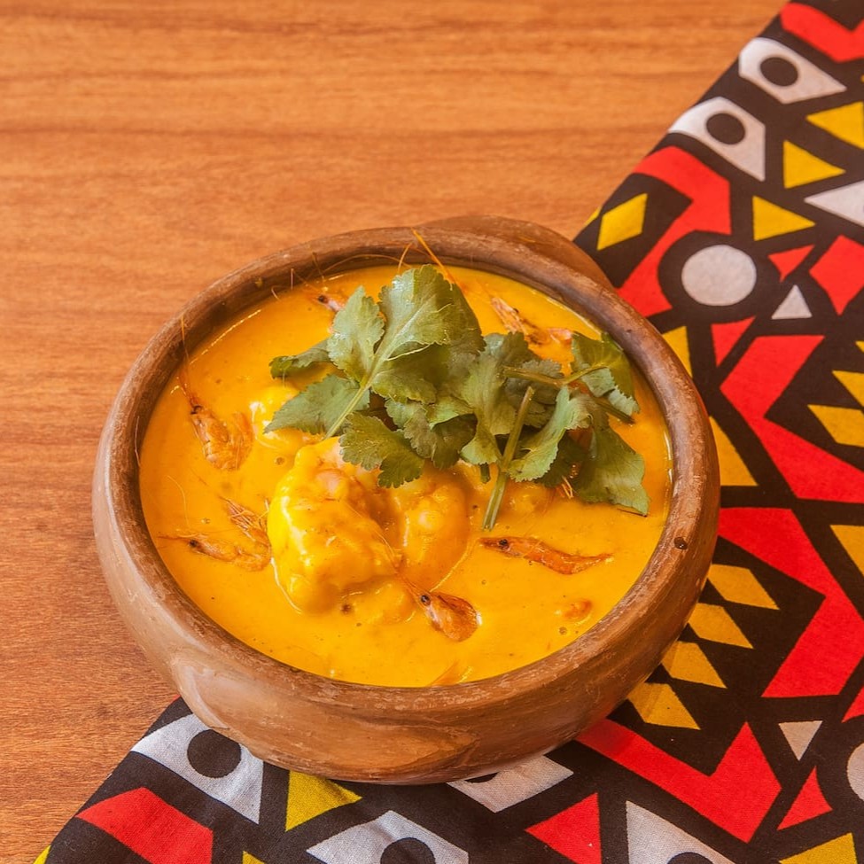 Este prato é cuidadosamente preparado com peixe fresco, delicadamente cozido em um caldo rico de dendê e leite de coco, o que lhe confere um sabor inconfundível. Acompanha nosso pirão caseiro, feito com a própria essência do peixe, que proporciona uma experiência gastronômica única. Para completar, servimos arroz branco soltinho e uma farofinha de dendê crocante e saborosa. Um prato que é uma verdadeira celebração da culinária brasileira.