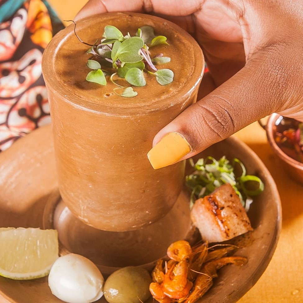 A 'Moqueca Mista de Mãe Cacau e Biu do Xambá' é uma sinfonia de sabores, apresentando uma harmoniosa combinação de peixe fresco e camarão suculento. Este prato é realçado por um pirão cremoso, arroz delicadamente soltinho e uma farofinha de dendê crocante. Proporciona uma experiência culinária inigualável que desperta os sentidos e transporta seu paladar diretamente para as praias ensolaradas do nordeste.