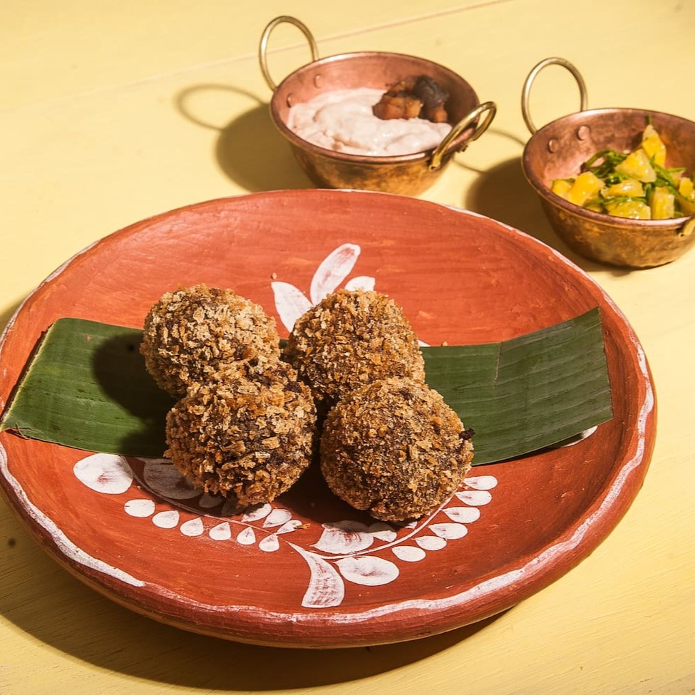 O Delicioso quarteto do croquete de carne de panela queridinho do Altar, feito com 100% de carne de panela e muito amor. Acompanha nosso famoso molho barbecue de goiabada