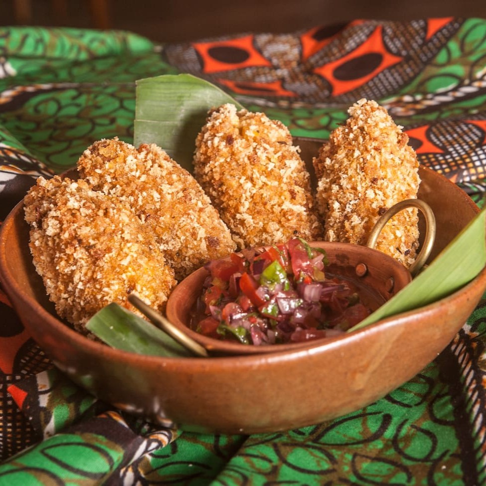 Quarteto do nosso inconfundível bolinho de feijoada. Acompanha um delicioso tartar de laranja.