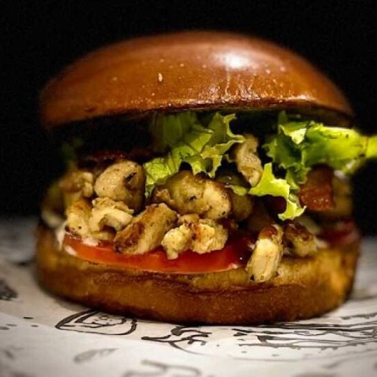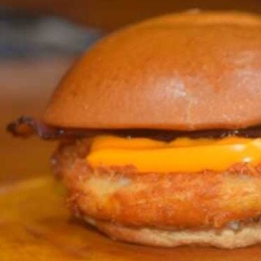 Pão amanteigado, frango empanado 100g, cheddar cremoso, bacon e maionese da casa.