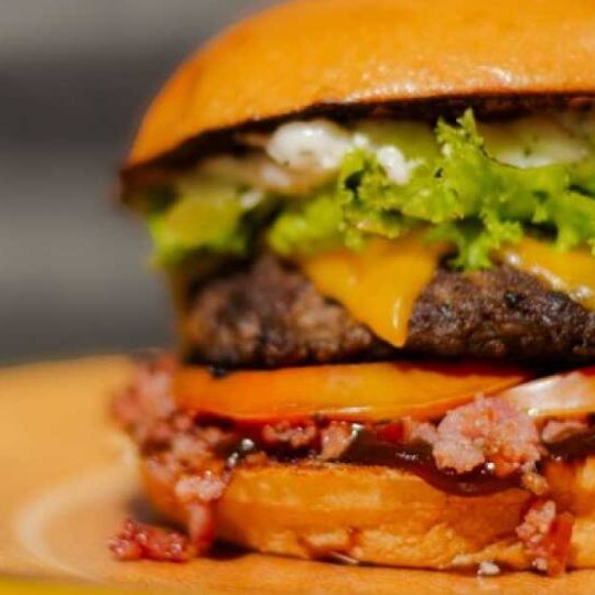 Pão com gergelim, duas carnes artesanais de 100g cada, queijo, bacon, cebola caramelizada, barbecue e molho da casa.