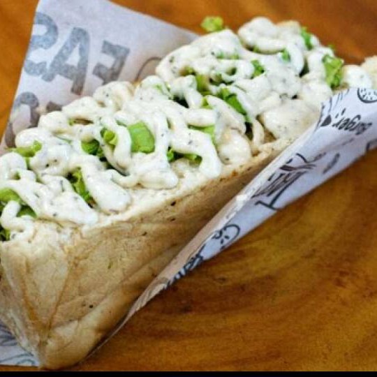 Pão bola, 100g de frango em cubinhos, tomate, alface, barbecue e molho da casa.