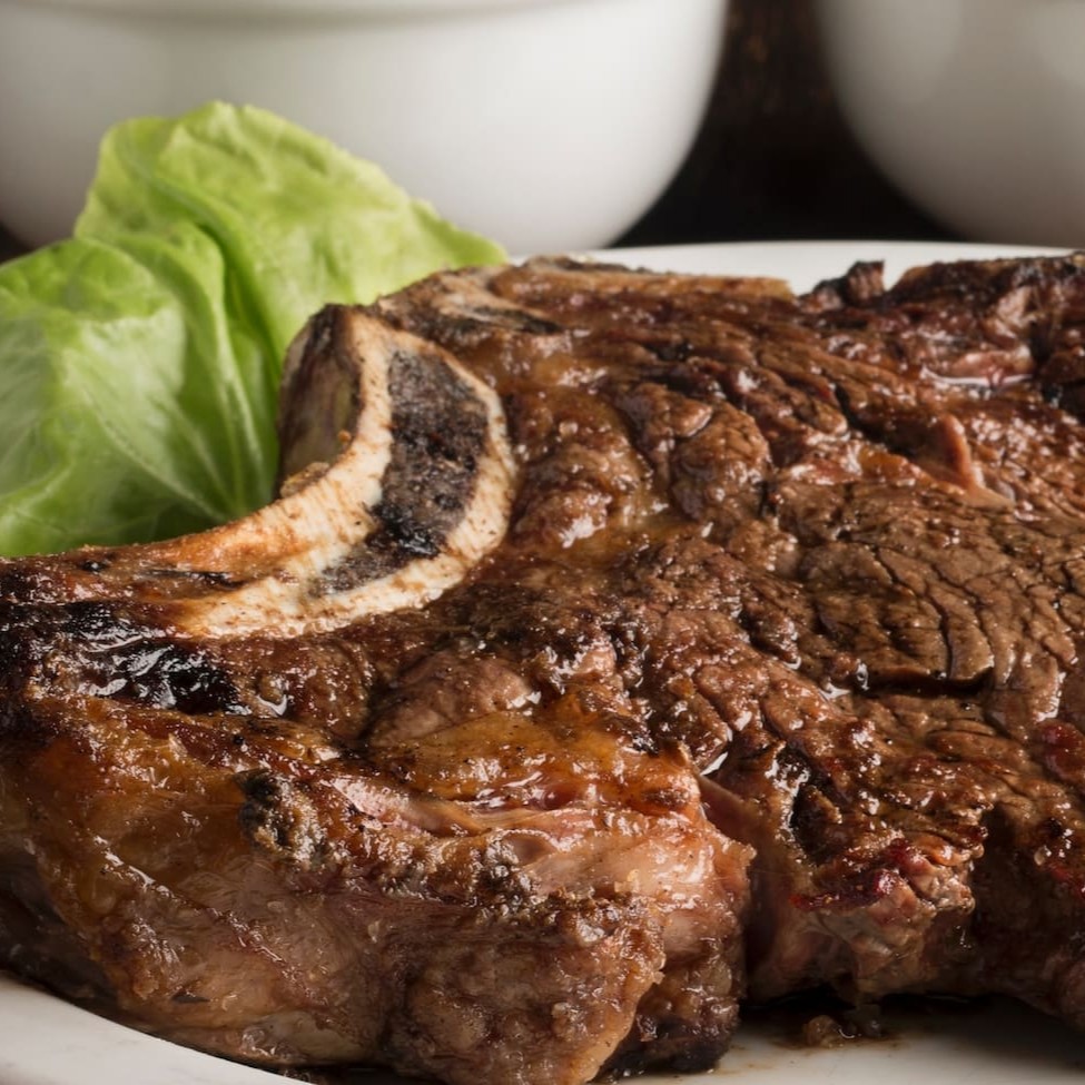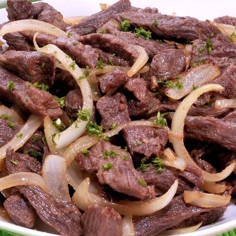 Bisteca bovina acompanhamentos feijão macassar arroz salada.
