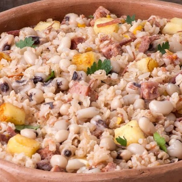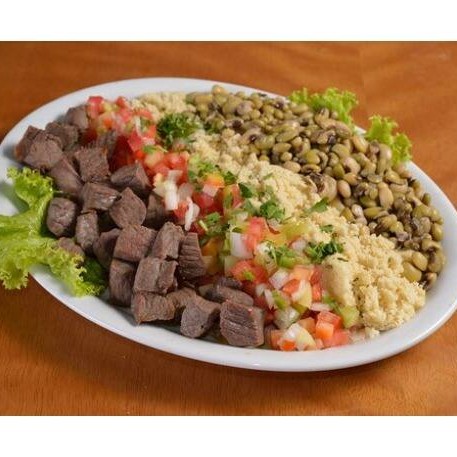 Feijão macassar arroz farofa vinagrete carne de sol e queijo coalho
