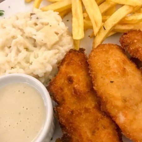 Essas Deliciosas Parmegiana vão acompanhada de fritas