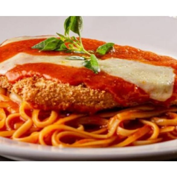 Macarrão nosso peito de frango empanado e um delicioso molho caseiro de tomate