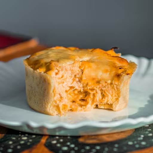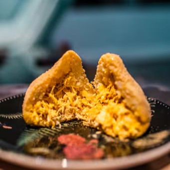 Massa fina feita com grão de bico, recheada com frango cremoso e finalizado com queijo gratinado.