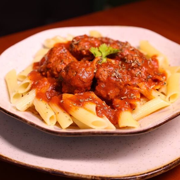 Novidade!! Agora temos almôndega de carne feito com carne de patinho, servido com um delicioso molho pomodoro e penne sem glúten ou espaguete de legumes.