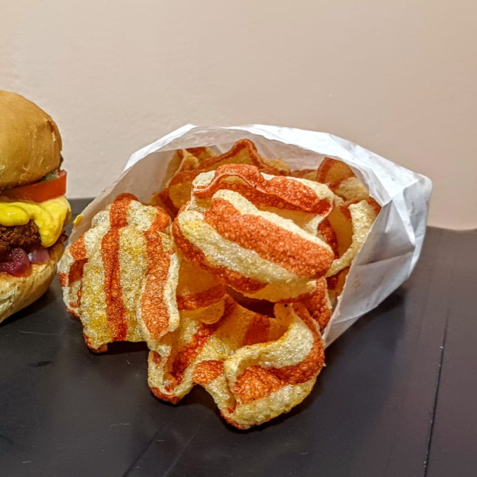 Porção de pururucas veganas temperadinhas. Contém glúten
