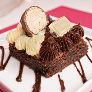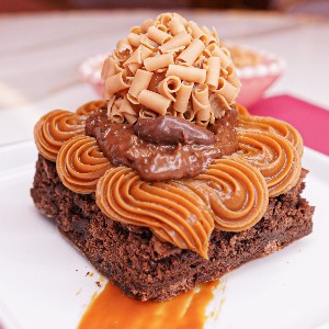 Brownie encapsulado no caramelo , banhado no chocolate nobre finalizado com flor de sal.